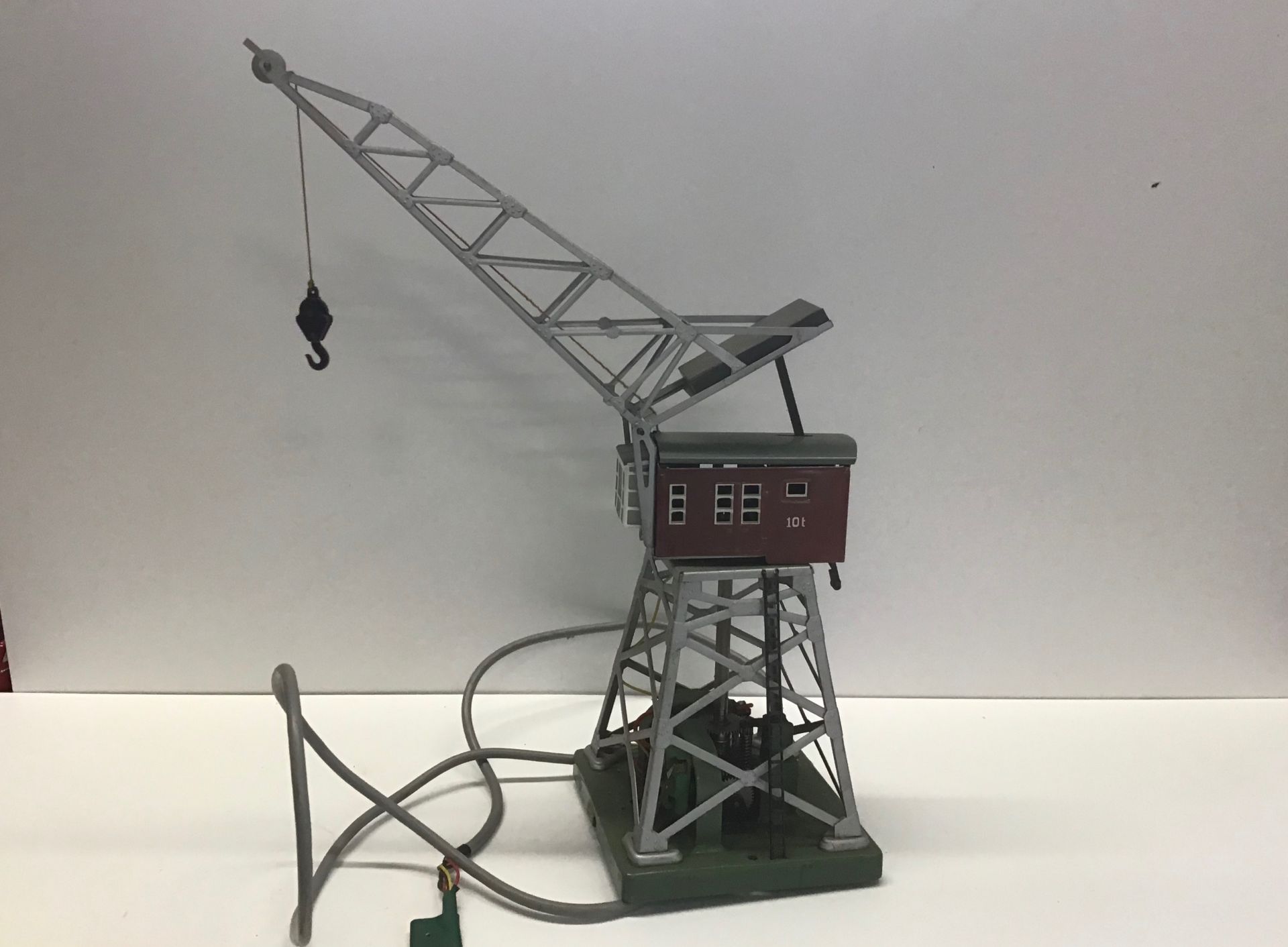 MARKLIN 7051 CRANE. One motor drives the rotation movement and one the lifting and lowering of the load. With hook and magnet that allows the loading of ferrous material. Arm inclination adjustable by hand. Illuminated cabin. Height cm. 26.