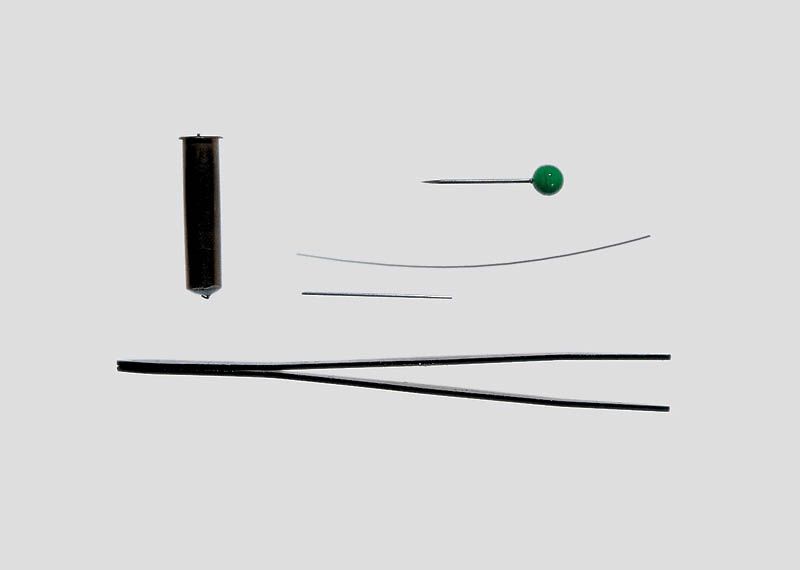 This kit consists of a smoke generator insert, replacement smoke tube, cleaning wire, and tweezers. Install from above a locomotive.