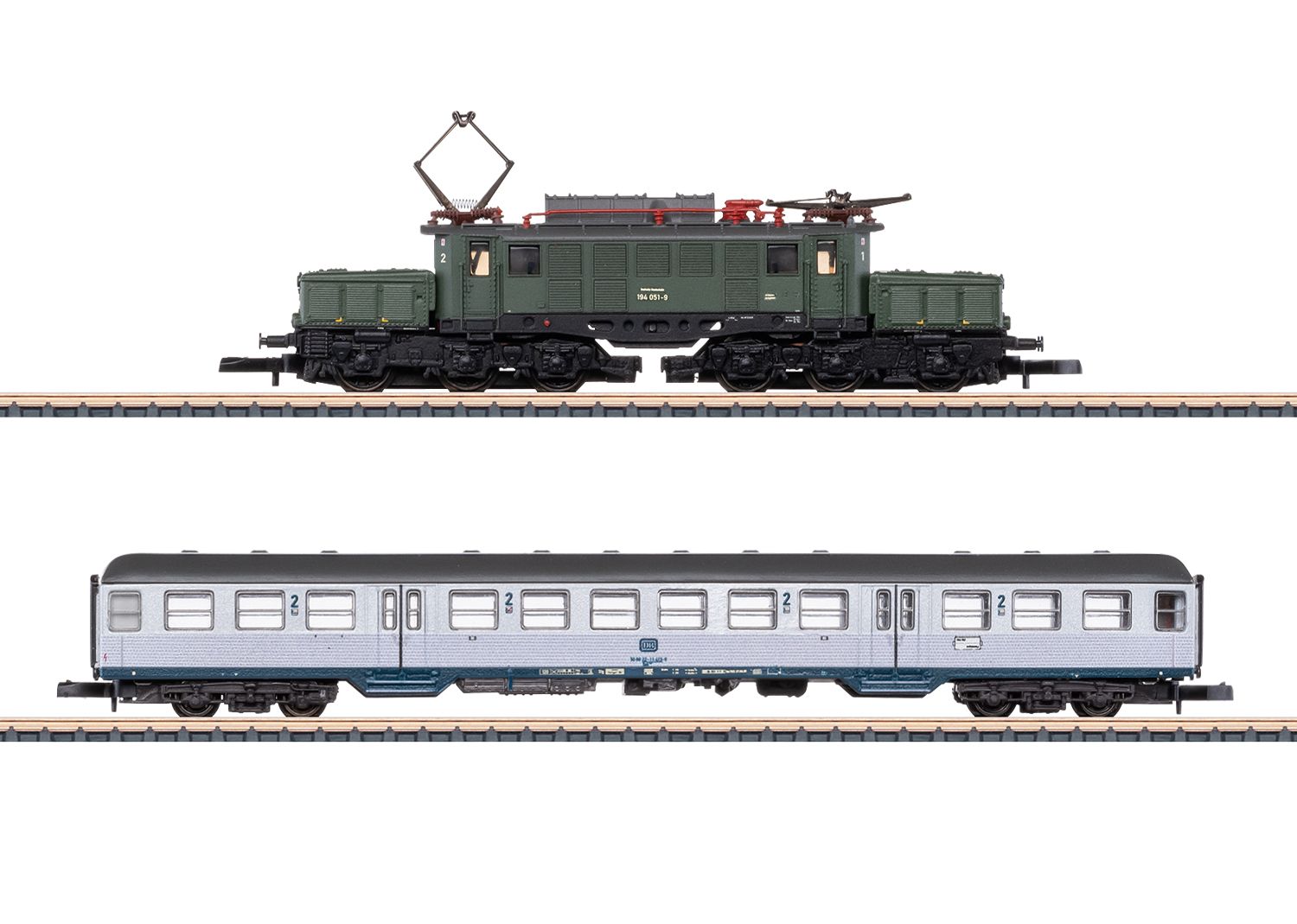 Prototype: German Federal Railroad (DB) class 194 electric locomotive and a type Bnb 720 commuter car. The units look as they did in Era IVc on the Geislingen Grade.