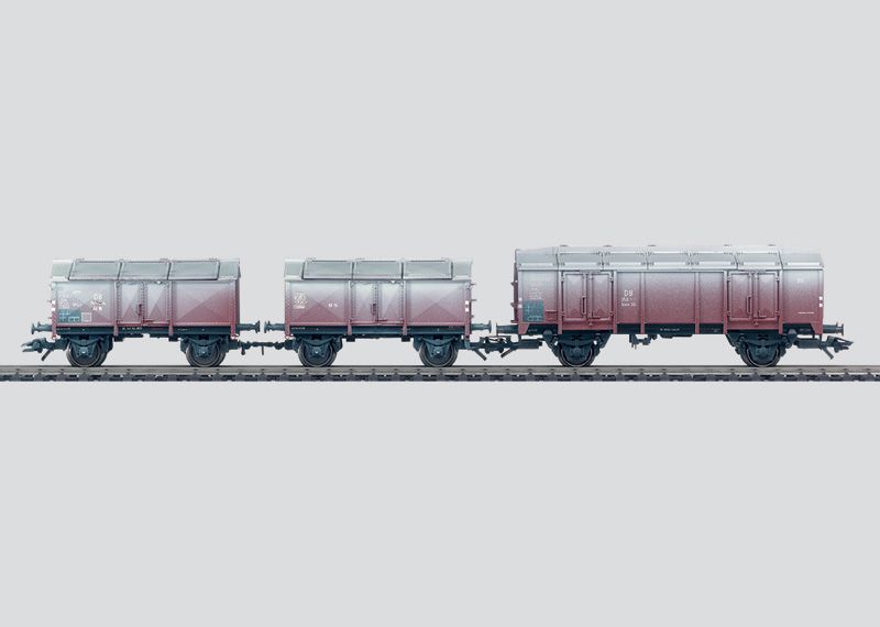 Prototipo: 3 carri merci di diversi tipi costruttivi della Ferrovia Tedesca (DB), Epoca III. 1 carro merci scoperto tipo K15 e un'unità doppia Kmm