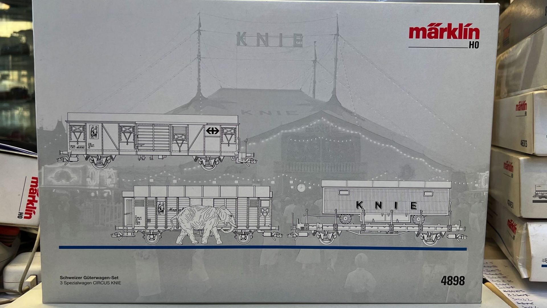Prototipo: MARKLIN HO 4898 SET 3 CARRI SVIZZERI CIRCO KNIE CON SCATOLA ORIGINALE E ELEFANTE