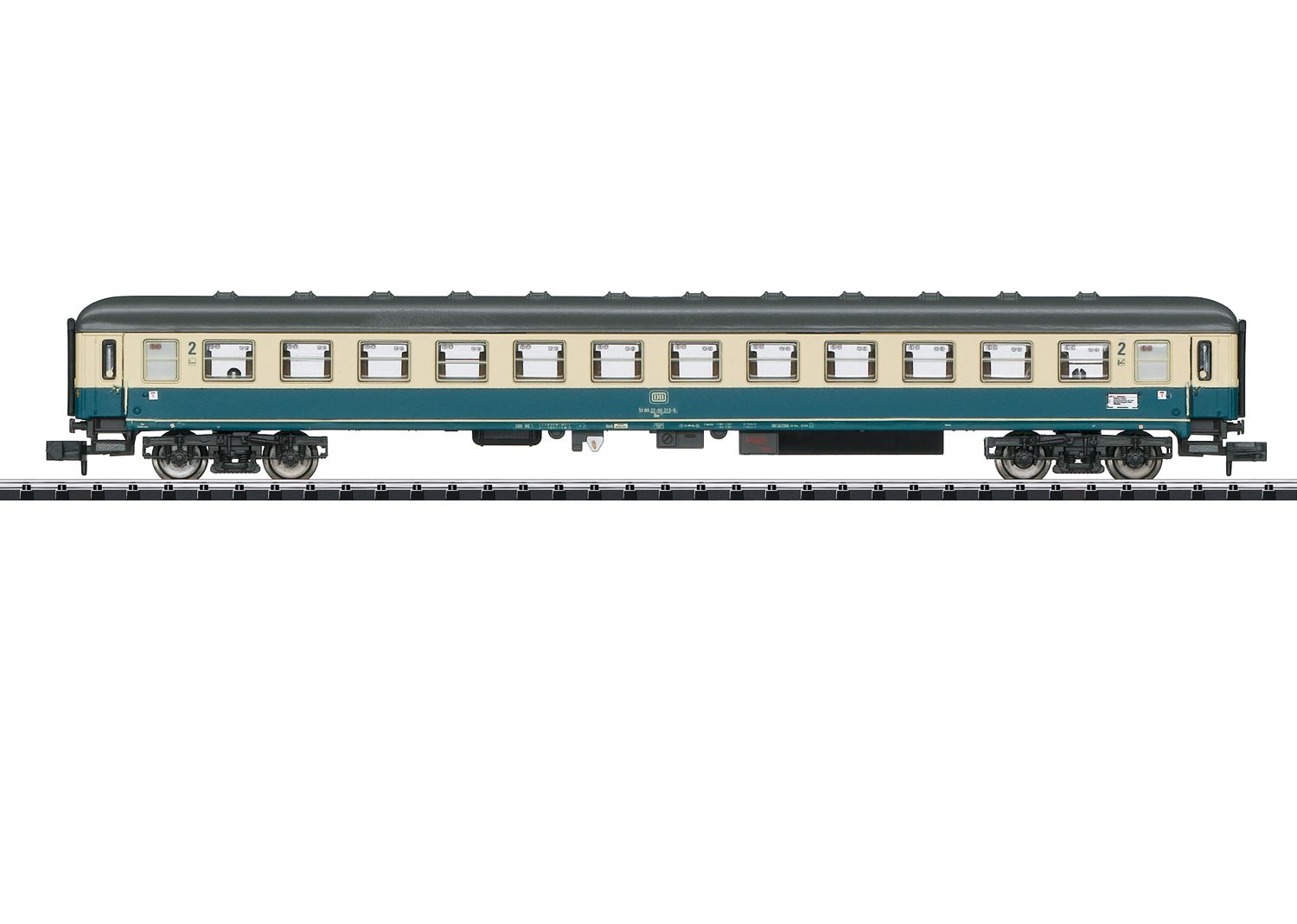 Prototipo: Carrozza a scompartimenti Bm 235, 2ª classe, nell'esecuzione della Ferrovia Federale Tedesca (DB), per il treno rapido IC 611 "Gutenberg" da Amburgo-Altona attraverso Colonia, Stoccarda sino a Monaco. Condizioni di esercizio nell'anno 1984.