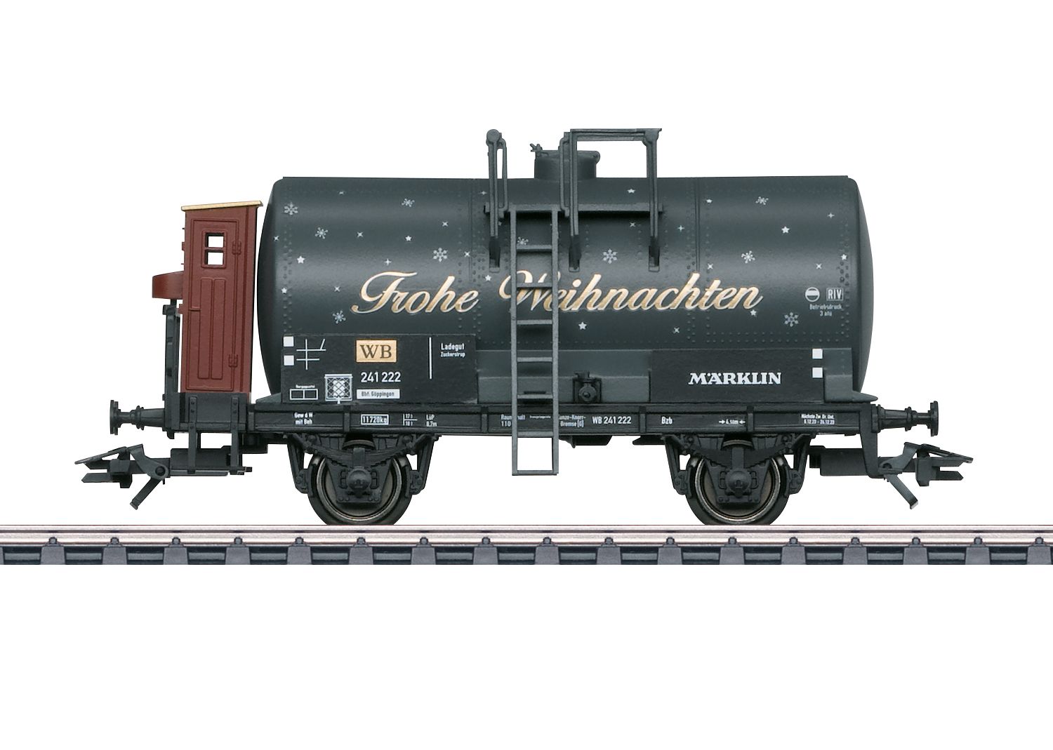 Carro cisterna a due assi con garitta dl frenatore. Qui come carro della Ferrovia di Natale (WB) in decorazione natalizia.