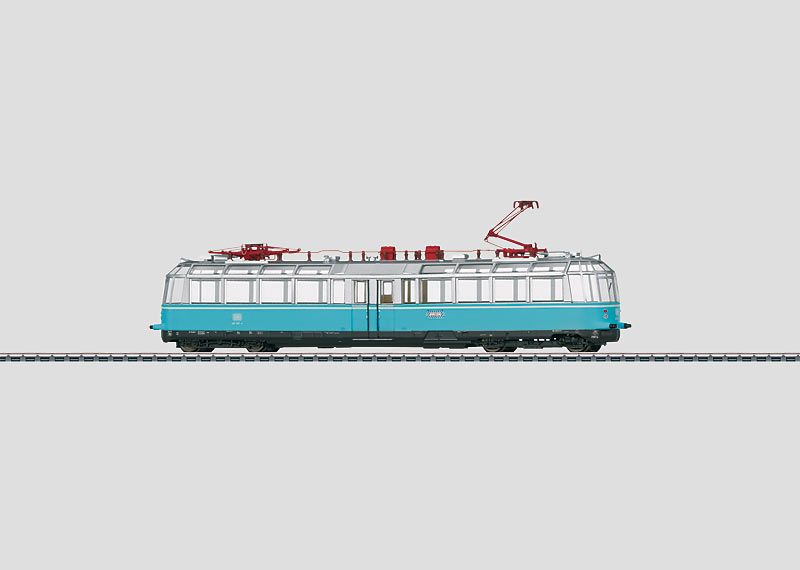 Modello: Con Decoder Digital mfx e funzionalità sonore commutabili di serie. Motorizzazione con regolazione di elevate prestazioni. 2 assi in un solo carrello azionati dal motore. Cerchiature di aderenza. Illuminazione interna incorporata di serie. Segnale di testa a tre fanali e 2 fanali di coda rossi, commutati secondo la direzione di marcia, in funzione nel modo tradizionale, commutabili in modo digitale. Illuminazione con diodi luminosi a luce bianca calda esenti da manutenzione (LED). L'illuminazione interna può venire attenuata come funzione digitale aggiuntiva. Carrelli con interassi di differente lunghezza conformemente al prototipo. Arredamento interno incorporato. Finestrini panoramici riportati. Sul tetto rispettivamente un pantografo a forbice ed un pantografo a braccio singolo con elemento strisciante doppio.