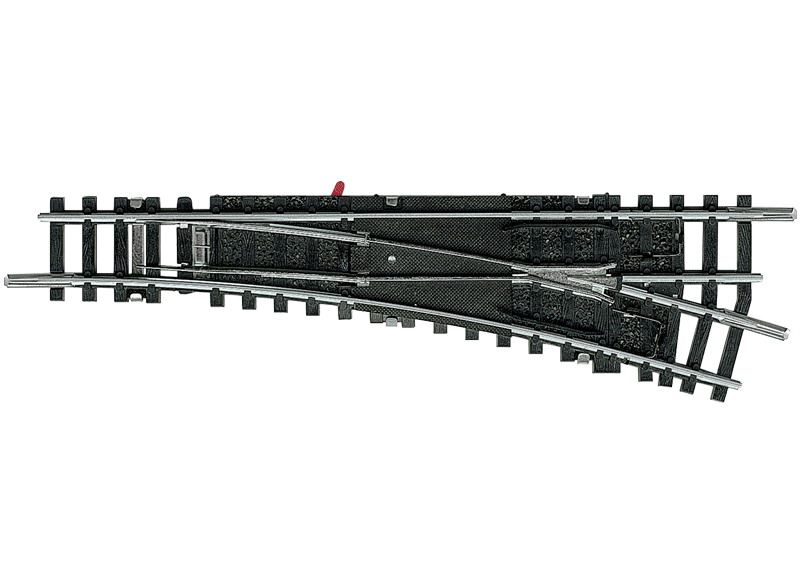 Scambi 15° slanciati con cuore polarizzato Lunghezza lato dritto: I< 112.6 >I Raggio deviato = R 4 - 15° + 1 x 14903 con funzione optional «scambio stop». Elettrificabile in un secondo momento con motore elettromagnetico per scambi.