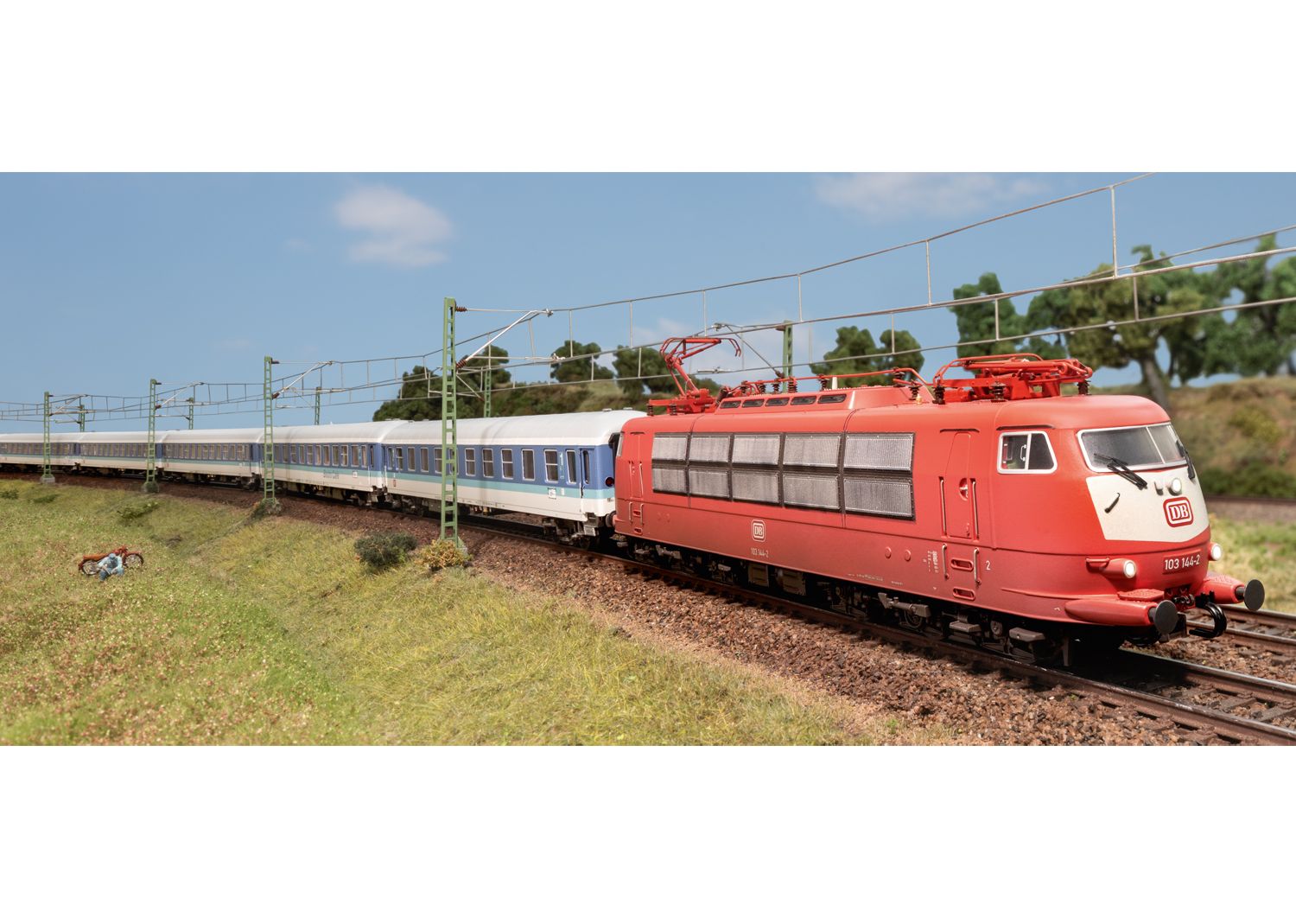 Delle adatte carrozze passeggeri potete trovarle nell'assortimento Trix H0 sotto i numeri di Catalogo 23200, 23201, and 23202. Questo modello potete trovarlo in versione per corrente continua nell'assortimento Marklin H0 sotto il numero di Catalogo 39152.