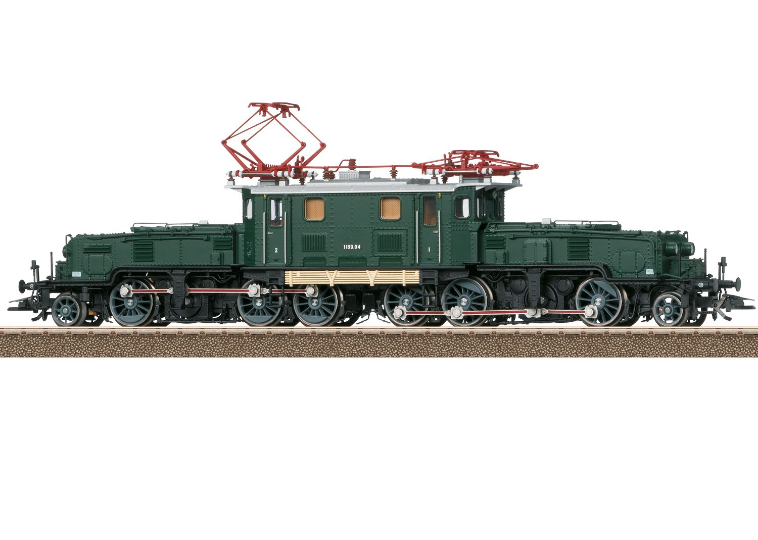 Modello: Con Decoder Digital ed estese funzionalità sonore e luminose. Motorizzazione con regolazione di elevate prestazioni con massa volanica, montata centralmente. Rispettivamente 2 ruote motrici in entrambi i carrelli azionati dal motore tramite giunti cardanici. Cerchiature di aderenza. Telaio articolato adattabile alle curve. Segnale di testa a tre fanali ed un fanale di coda rosso, commutato in dipendenza dal senso di marcia, in funzione nel modo tradizionale, commutabile in modo digitale. Illuminazione commutabile a un fanale di coda bianco. Segnale di testa sulle testate 2 e 1 della locomotiva disattivabile ciascuno separatamente in modo digitale. Quando il segnale di testa su entrambe le testate della locomotiva è disattivato, da entrambi i lati allora funzionalità del fanale da manovra (rispettivam. 1x bianco a ciascuna testata della locomotiva). Illuminazione della cabina di guida e del comparto macchinari commutabili ciascuna separatamente in modo digitale. Illuminazione con diodi luminosi esenti da manutenzione (LED) a luce bianca calda e rossi. Esecuzione di metallo altamente dettagliata con numerosi particolari applicati separatamente, come tubazioni di raffreddamento per l'olio del trasformatore. Riproduzione della cabina di guida e del comparto macchinari. Dettagliato equipaggiamento del tetto. Raggio minimo percorribile 360 mm. Sono accluse manichette del freno e riproduzioni dell'aggancio a vite.