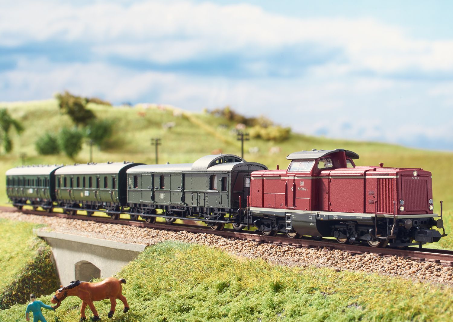 Prototipo: Locomotiva Diesel V 100 2027 della Ferrovia Federale Tedesca (DB). Versione in rosso porporino dell'Epoca III. Impiego: Treni passeggeri e merci.